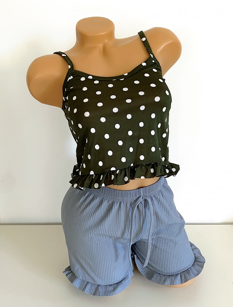 Pijama femei cu pantaloni scurti si maieu cu imprimeu Polka