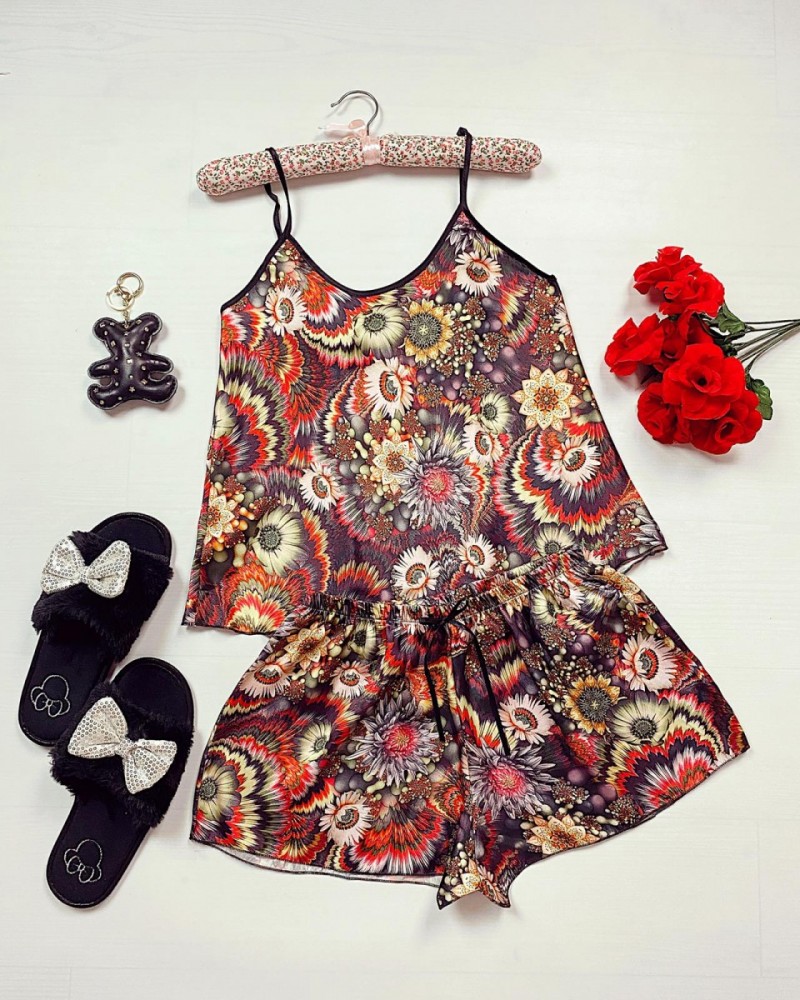 Pijama dama ieftina primavara-vara maro Lady cu imprimeu Indian