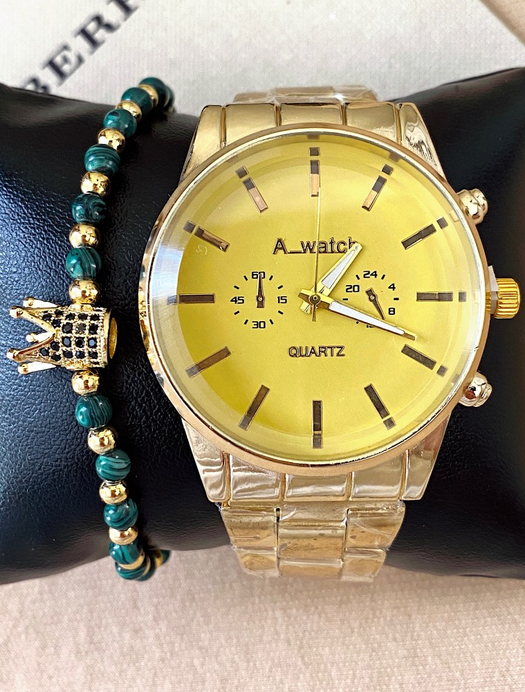 Ceas barbat auriu cu bratara metalica si cadran galben