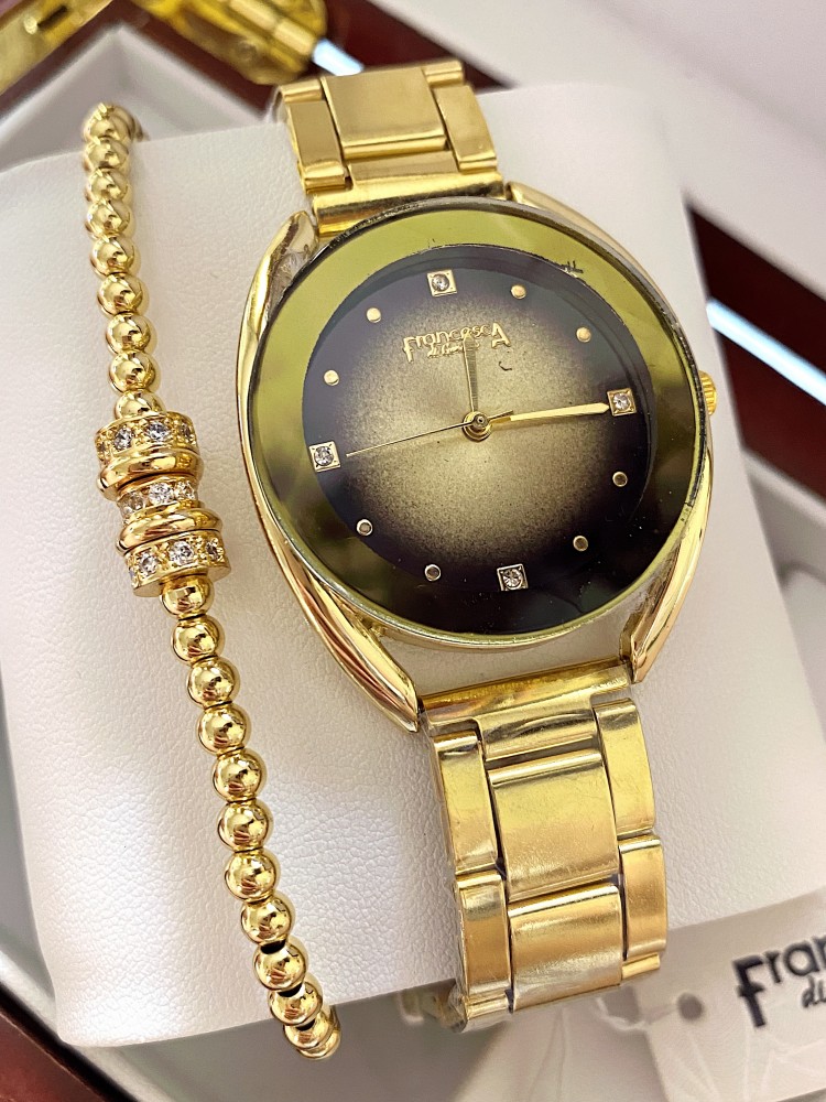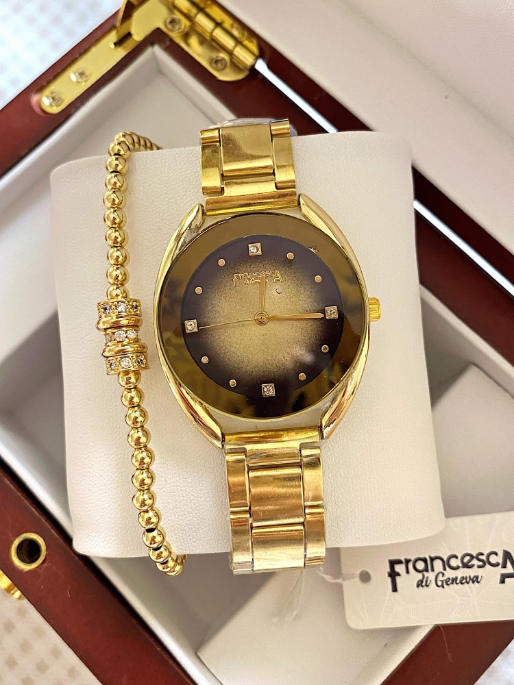 Ceas dama auriu cu bratara metalica si cadran negru