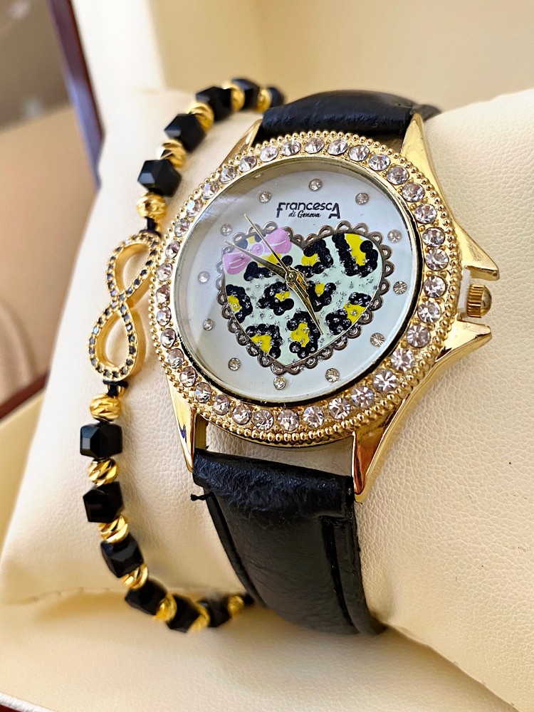 Etichete: Ceas dama negru cu bratara din piele ecologica si cadran cu inima si fundita, ,