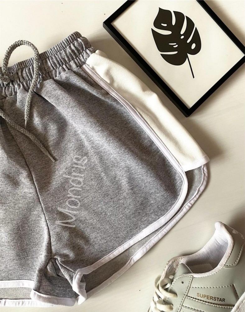 Pantaloni dama scurti sport gri cu dungi laterale albe