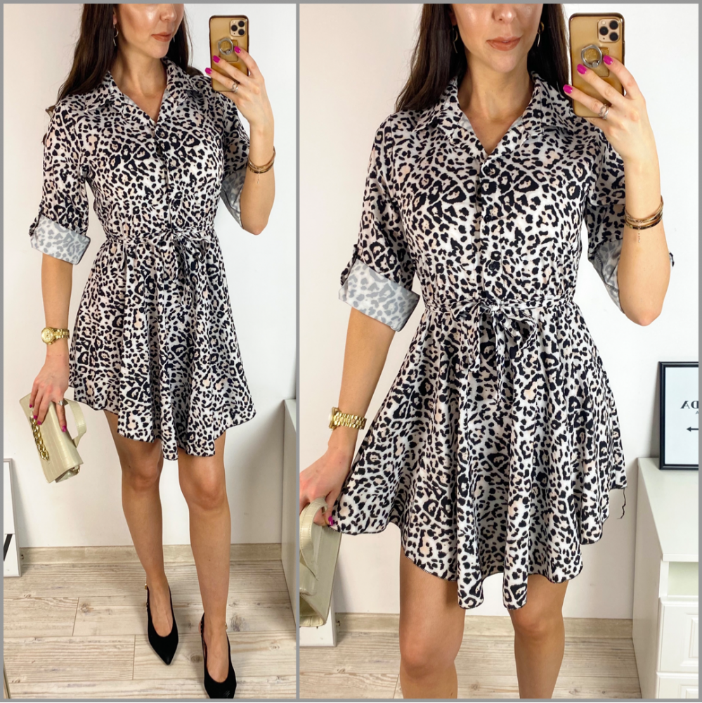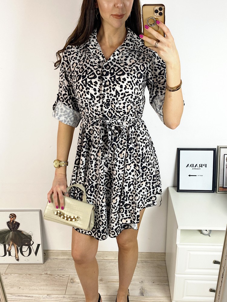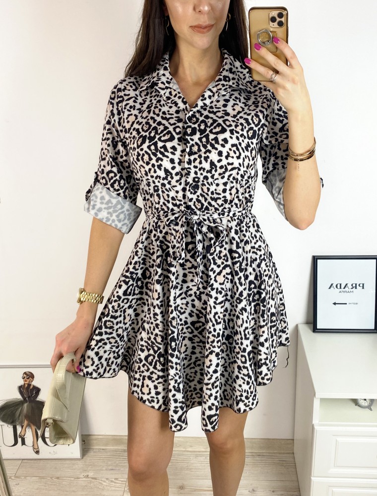 Rochie de zi ieftina alba cu imprimeu animal print mic