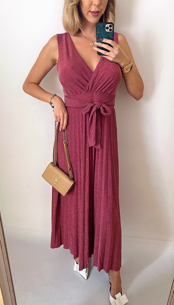 Rochie ieftina eleganta roz midi cu sclipici si cordon in talie