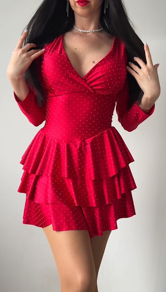 Rochie dama rosie perfecta Valentine's Day cu pliuri si pietricele stralucitoare
