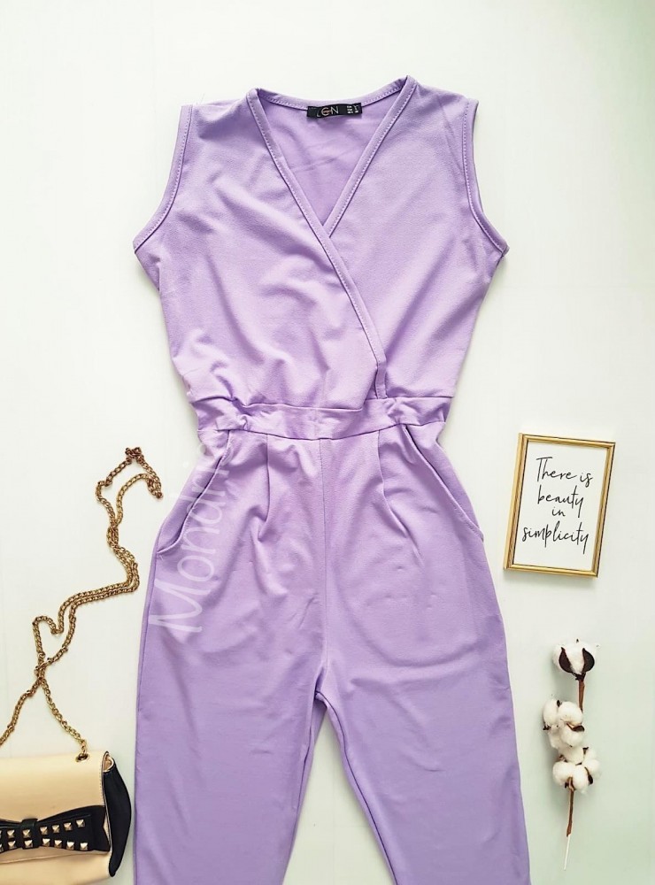 Salopeta dama casual lunga mov cu decolteu parte peste parte