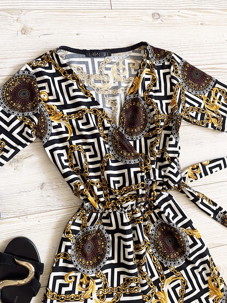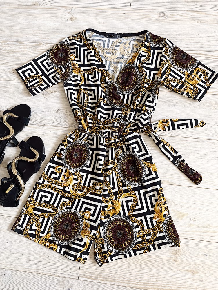 Salopeta dama casual scurta neagra cu imprimeu zig-zag