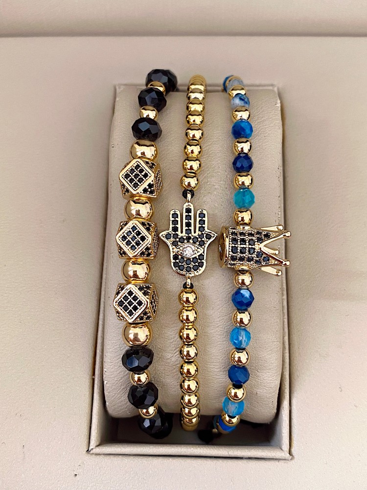 Setul format din 3 bratari este tot ce ai nevoie ca sa accentuezi eleganta din gesturi.