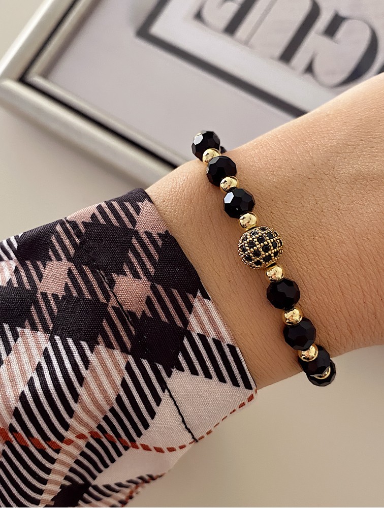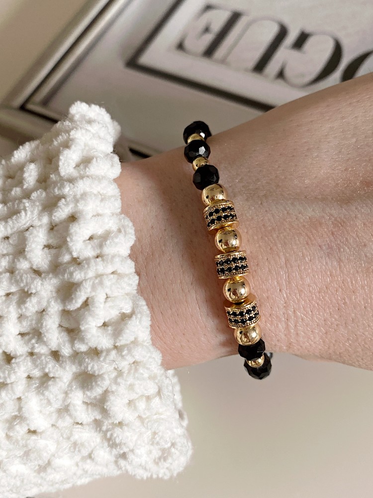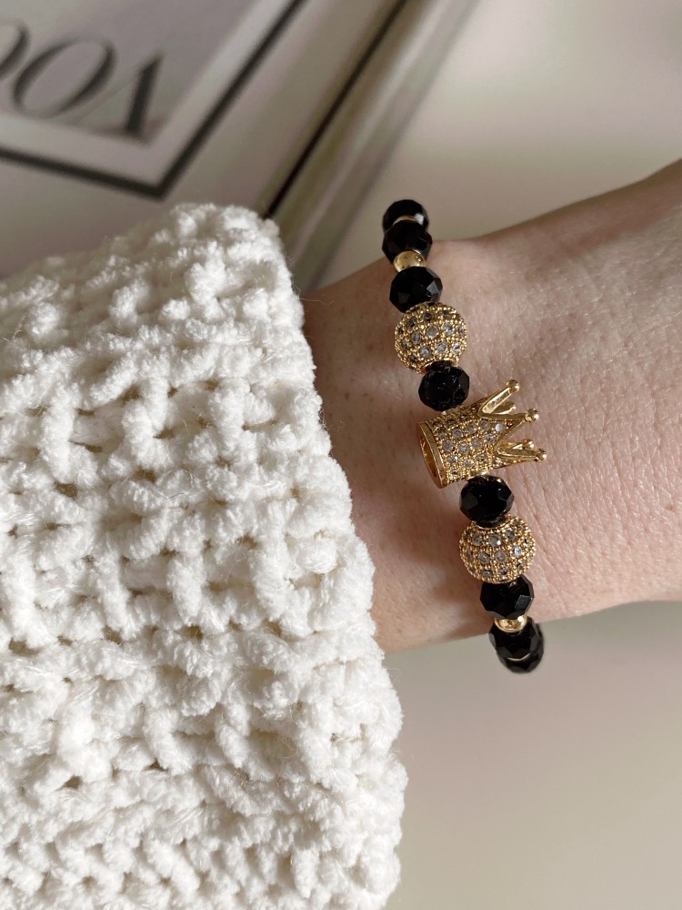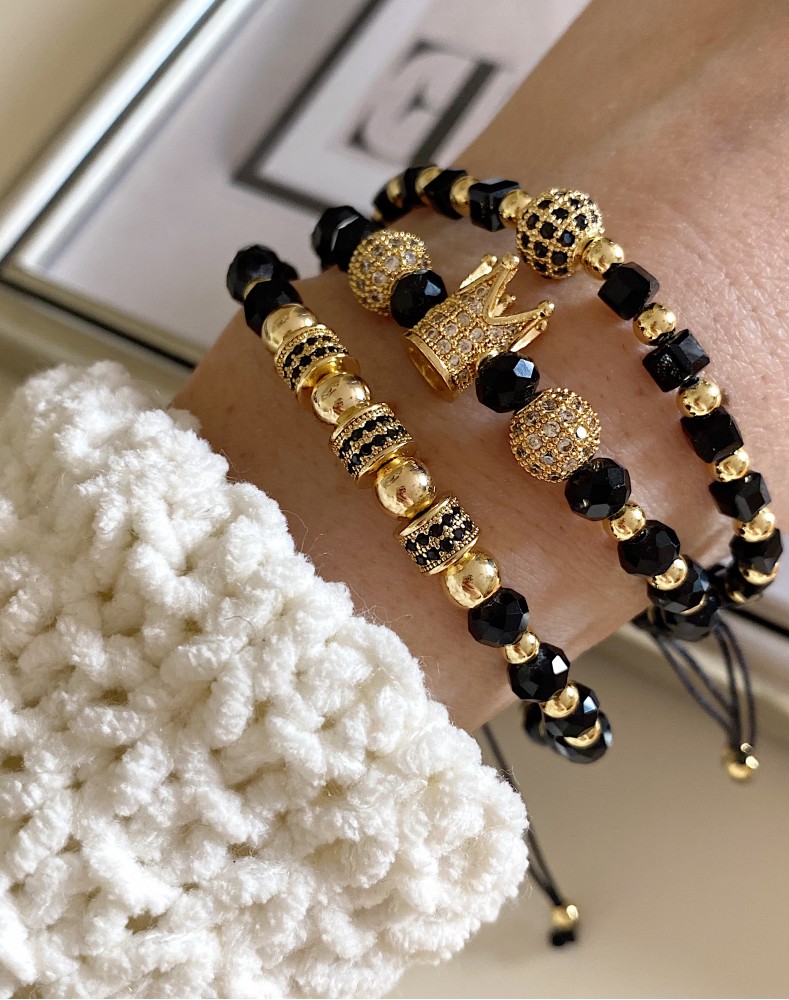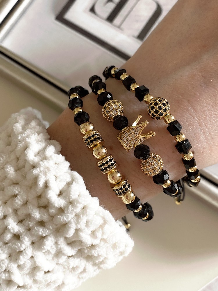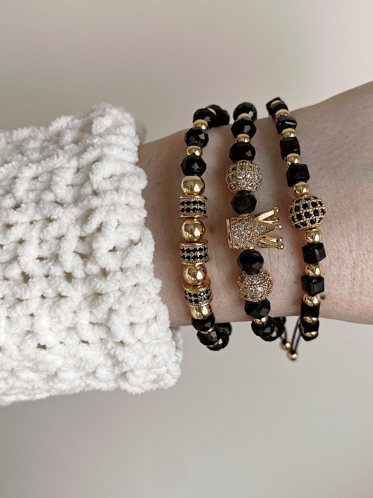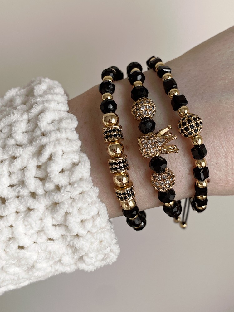 Set 3 bratari unisex modele deosebite cu margele negre si forme cu pietricele negre