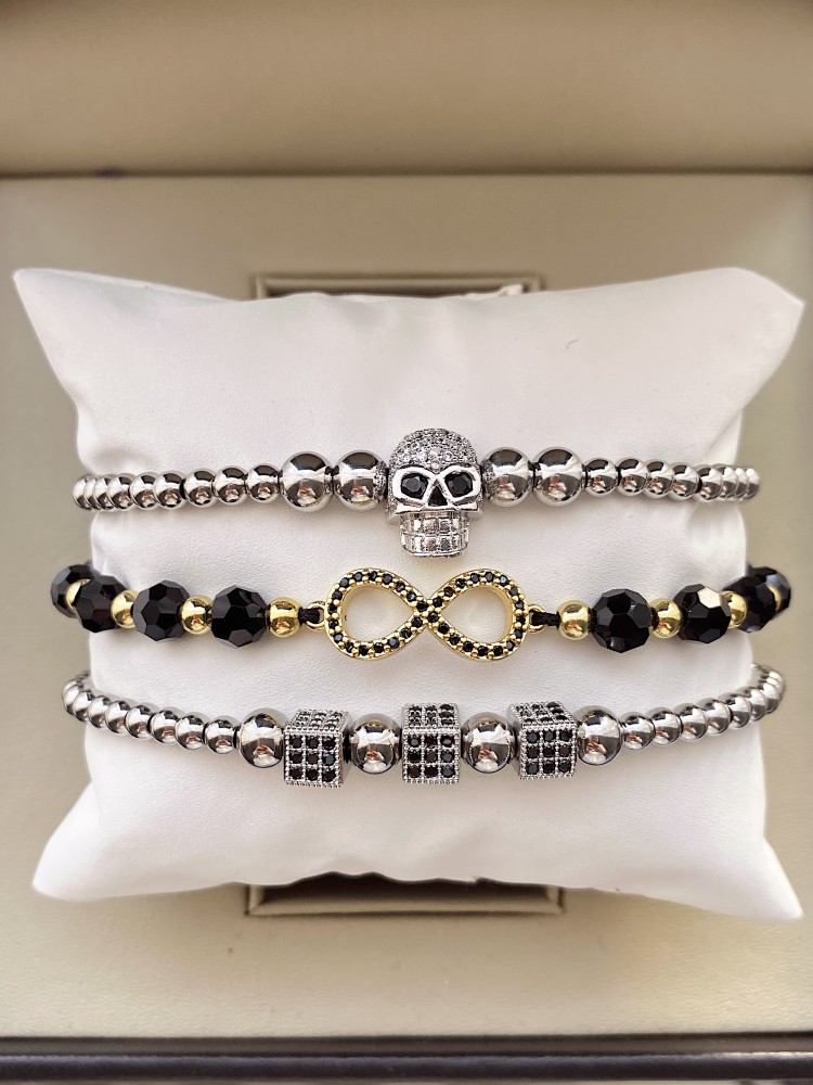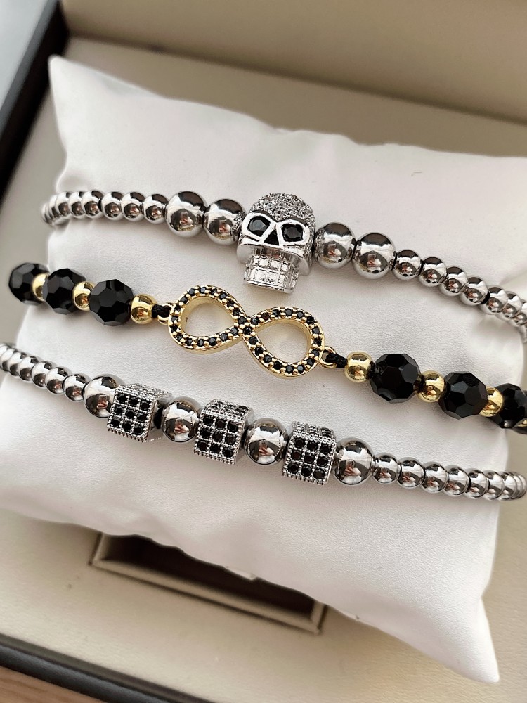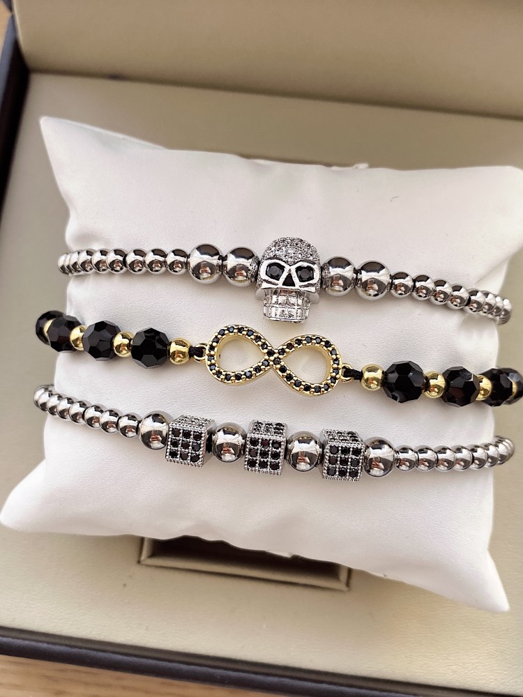 Set 3 bratari unisex modele deosebite cu margele si forme cu pietricele stralucitoare