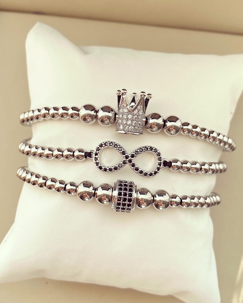Set 3 bratari unisex modele deosebite cu margele si forme cu pietricele stralucitoare