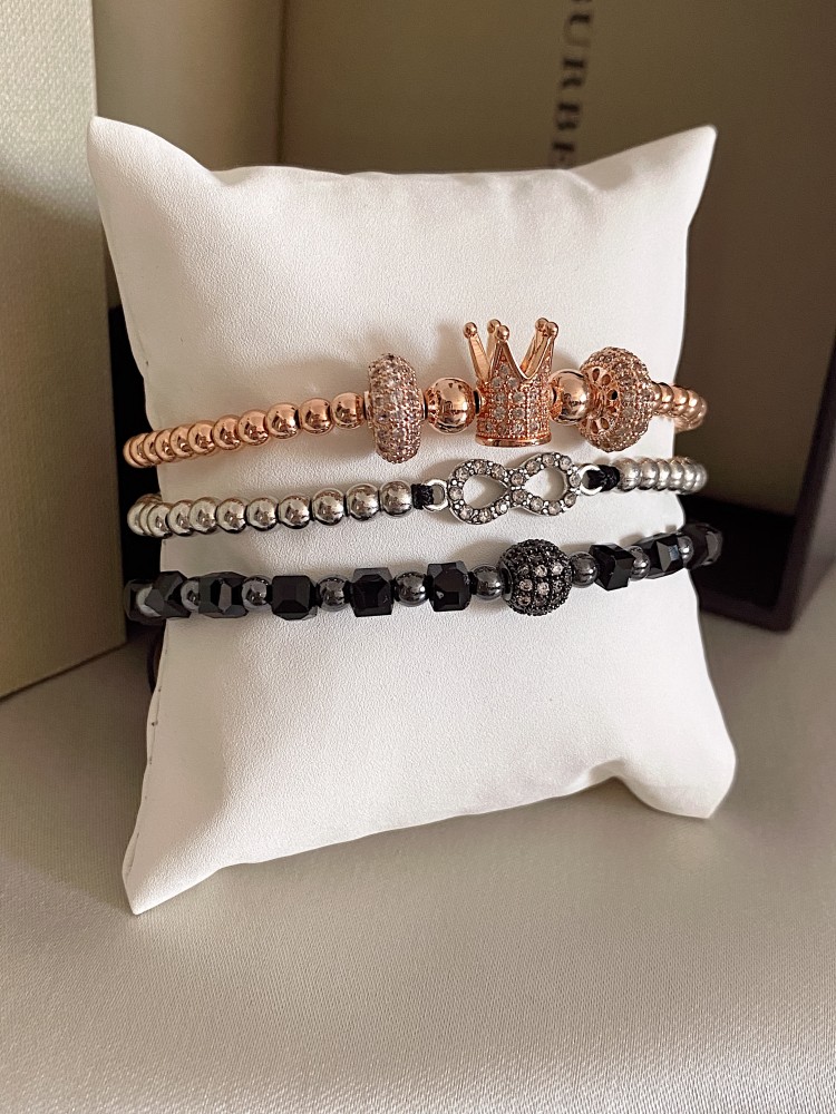 Setul format din 3 bratari este tot ce ai nevoie ca sa accentuezi eleganta din gesturi.